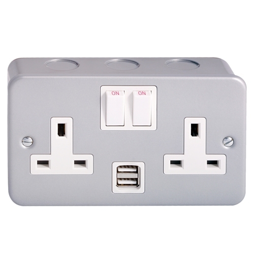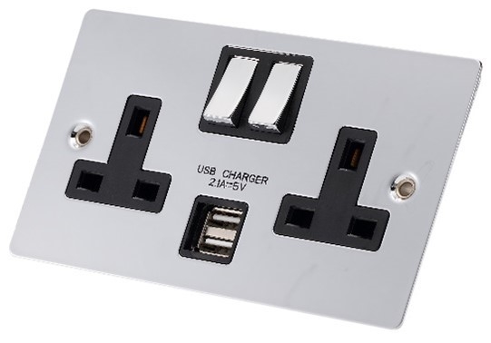 2 Gang 13A DP Switched socket with 2.1mA USB charger