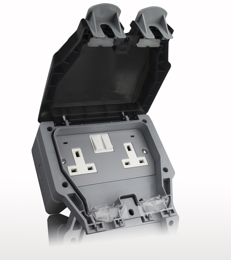IP66 2 Gang DP Switched socket with twin earth