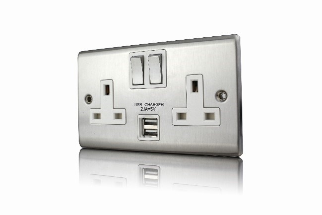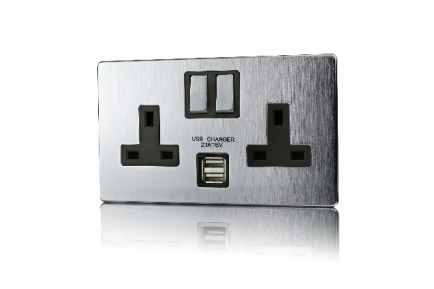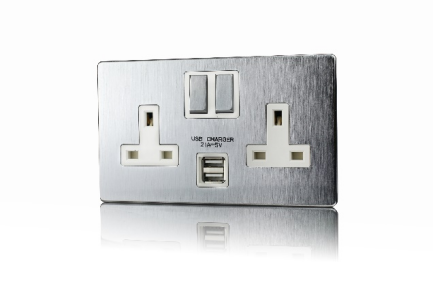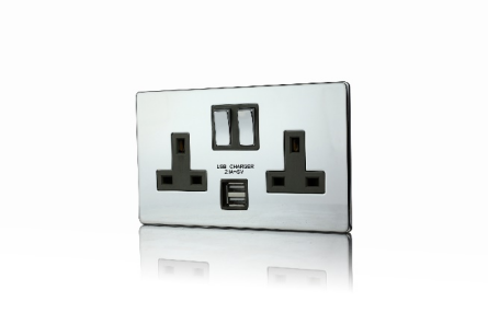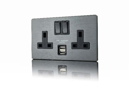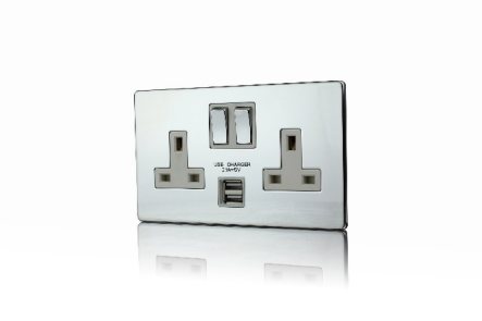 2 Gang 13A DP Switched socket with 2.1mA USB charger