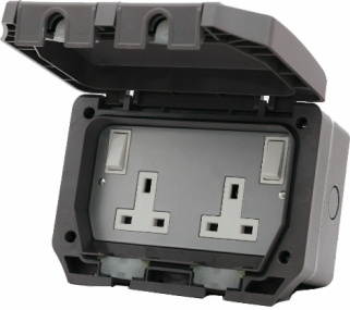 IP66 2 Gang DP Switched socket with twin earth